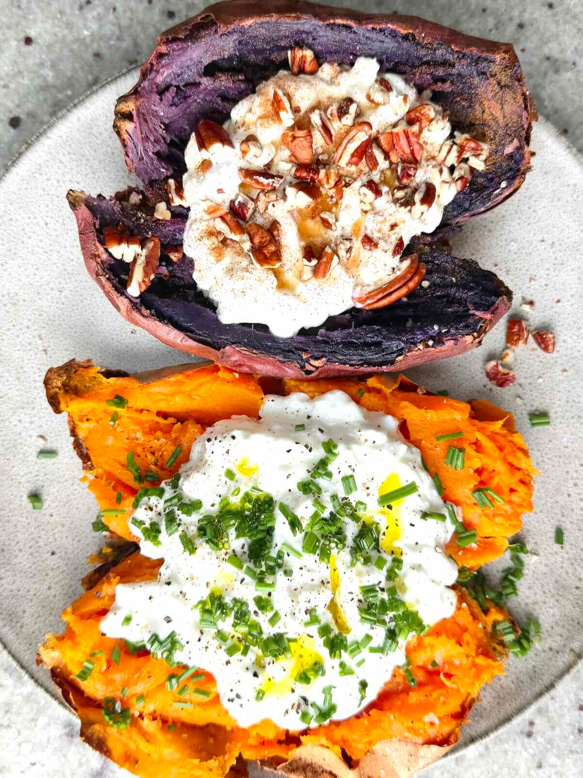 For the savory potato versions, roast your cubes or bake your potato until tender and slightly crisp before adding the cheese and herbs.