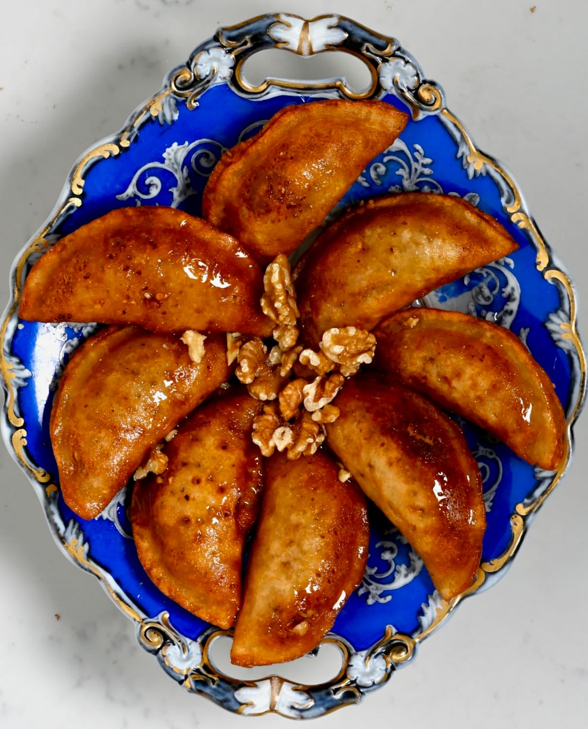 - Walnut-filled: Spoon in the filling, fold into a half-moon, and seal firmly.